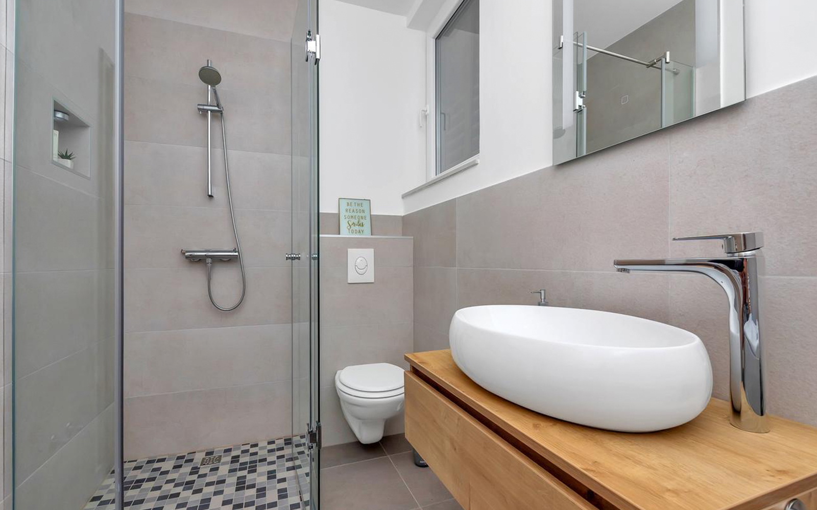 Die Wohnungen verfügen über ein geschmackvoll gestaltetes Badezimmer mit einer begehbaren Dusche.